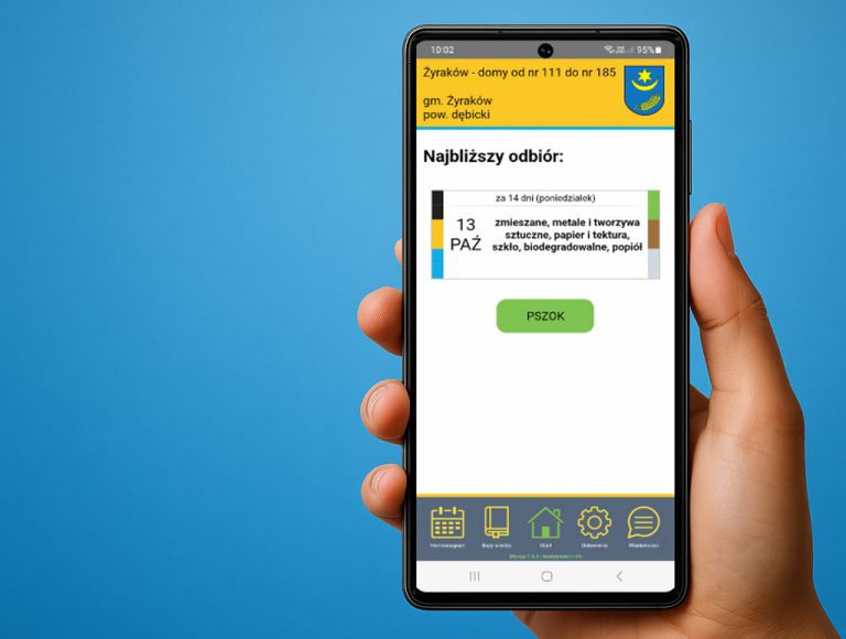 Od 29 września 2025 r. mieszkańcy gminy Żyraków mogą korzystać z nowoczesnej aplikacji mobilnej „Kiedy Śmieci”, która w prosty i przejrzysty sposób przypomina o odbiorze odpadów. To kolejny krok w stronę poprawy dostępności informacji i ułatwienia codziennego życia mieszkańców. Jak działa aplikacja? Wystarczy określić swoją lokalizację, a aplikacja sama poinformuje,